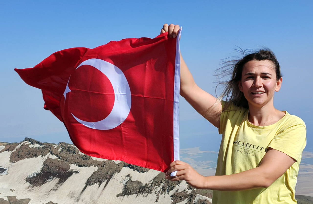 Kahramanmaraşlı olan ve 5 yıldır Ağrı'da görev yapan, evli ve 1 çocuk annesi Hatice Bolat Yiğit, sağlık çalışanlarına yönelik artan şiddet olaylarına dikkat çekmek için 4 bin 58 metre yüksekliğindeki Süphan Dağı’na tırmandı.