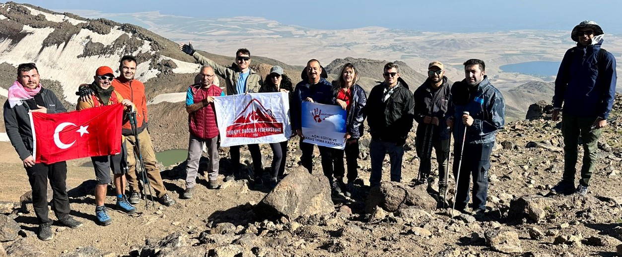Türkiye Dağcılık Federasyonu'nun organize ettiği, 2’si kadın 16 dağcının katıldığı tırmanışta zirveye ulaşan hemşire Yiğit, burada Türk bayrağı ile 'Sağılıkta Şiddete Hayır' yazılı pankart açtı.