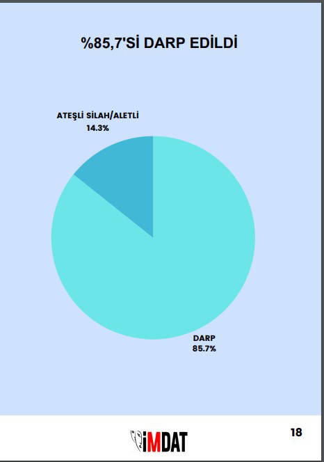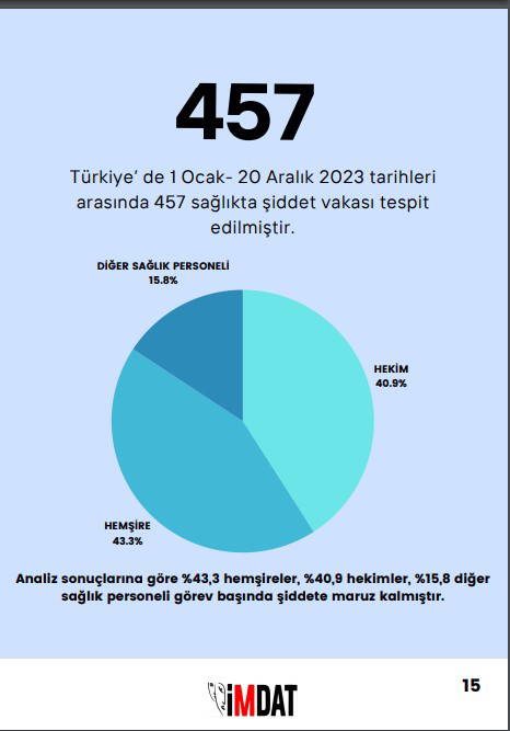Rapora göre 1 Ocak ile 20 Aralık 2023 tarihleri arasında sadece medyaya yansıyan "sağlıkta şiddet" olay sayısı 457. Saldırıların yaklaşık yüzde 43'ü hemşirelere, yüzde 41'i hekimlere, yüzde 15.8'i ise yardımcı sağlık personeline yapılıyor.