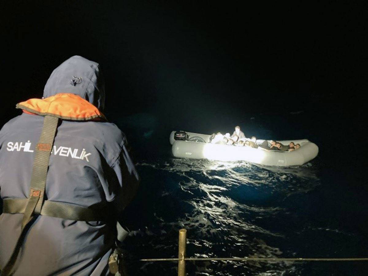Dalaman açıklarında ise lastik botun motoru arıza yaparak açık denizde sürüklenen 35, kaçış hazırlığında olan 19 düzensiz göçmen yakalandı.