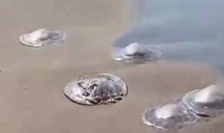Hatay’ın Samandağ ilçesi sahilinde görülen onlarca denizanası vatandaşlar tarafından görüntülendi. Zehirli olduğu belirtilen denizanası vatandaşlar arasında paniğe neden olurken, uzmanlar bu türden uzak durulması gerektiğini kaydetti.