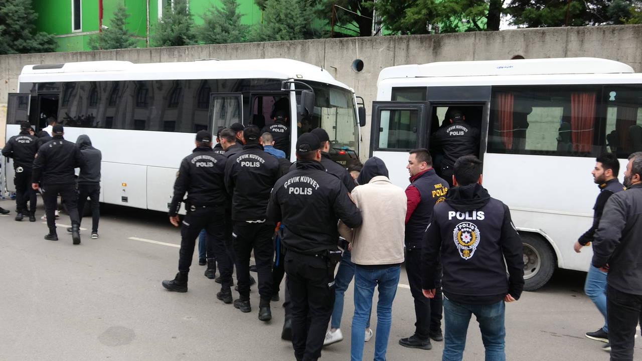Kocaeli Emniyet Müdürlüğü’ne getirilen 24 şüpheli buradaki işlemlerinin ardından Gebze Adliyesi’ne sevk edildi.