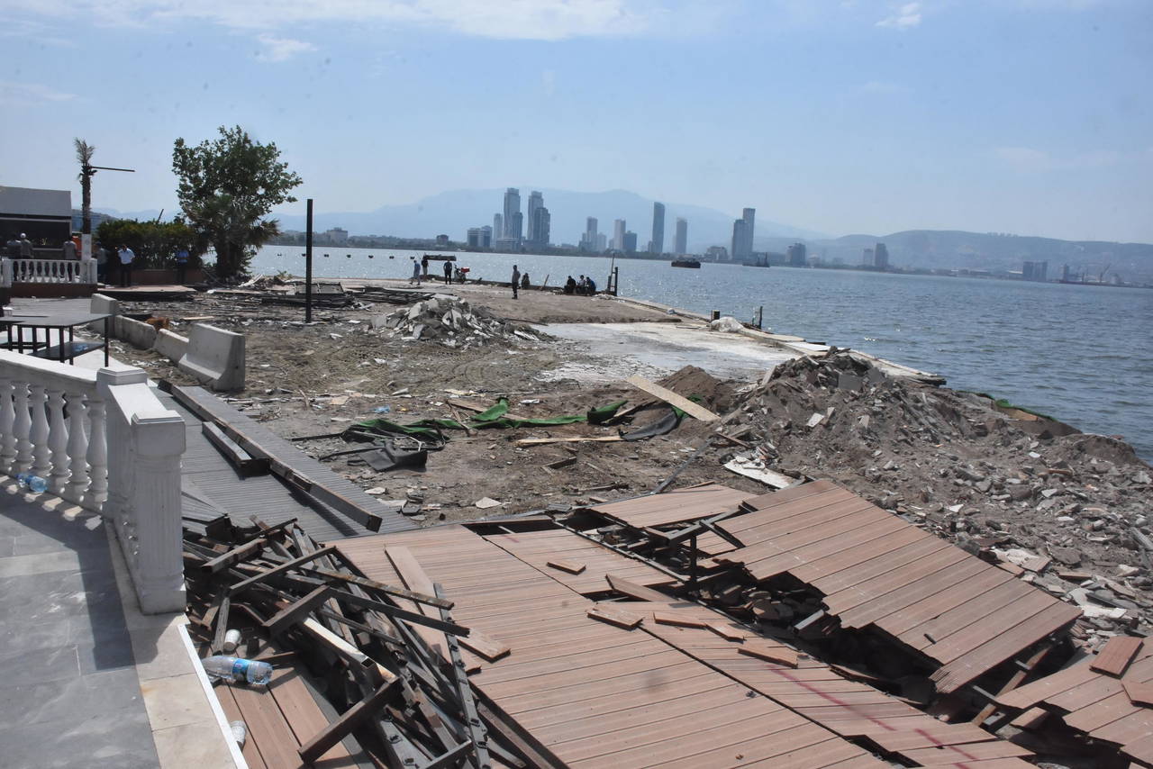 Yalının kapıları da mühürlendi. İşletmeciler yıkım kararına tepki gösterirken, Bayraklı Belediyesi'nden yapılan açıklamada, “Söz konusu yerin işletme ruhsatı yılbaşında iptal edildi ve yeniden ruhsatlandırma yapılmadı. Bu süreçte tam 9 kez mühür fekki yapılarak, ticari faaliyetlere devam edildiği, deniz kenarına kaçak platformlar ve eklentiler inşa edildiği tespit edildi. Bu alanlarda defalarca yıkım gerçekleştirildi, yasal işlem uygulandı. Savcılığa suç duyurusunda bulunuldu. Söz konusu yıkımlar, devletin hüküm ve tasarrufu altında olan alana kaçak olarak konulan eklentileri kapsayacak şekilde gerçekleştirildi. Tescilli binanın bulunduğu mülkiyet sınırlarında herhangi bir işlem yapılmadı" denildi.