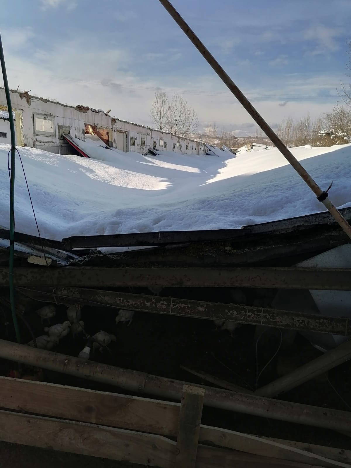 10 bin tavuk çöken çatının altında, geri kalan tavuklar ise soğuk havaya bağlı öldü.