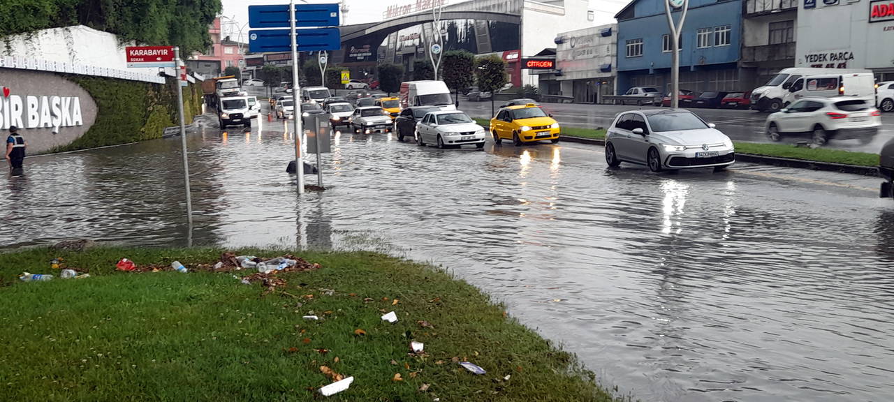 Sakarya'da öğle saatlerinde sağanak etkili oldu. Yağış sonrası bazı yollar suyla kaplandı.