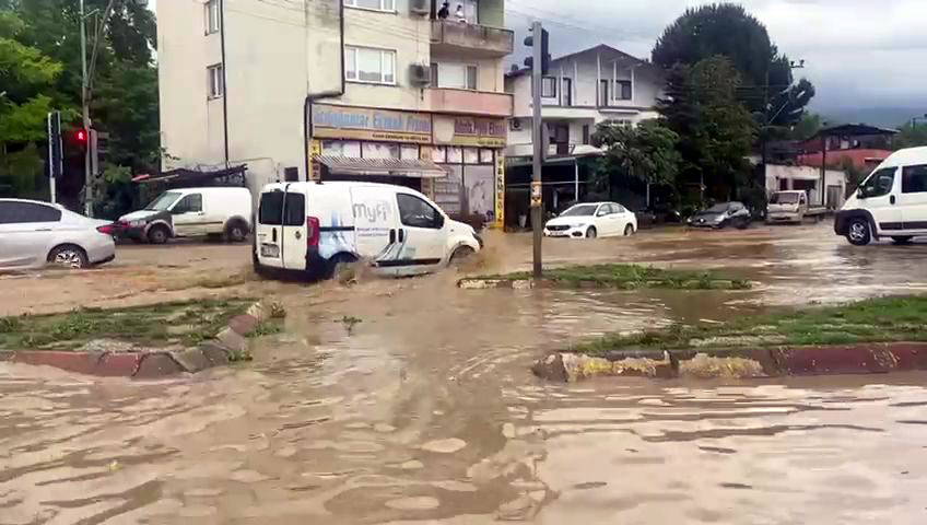 Orhan Gazi Caddesi'nde rögarların taşmasıyla, yolda yaklaşık 30 santim yüksekliğinde su birikintisi oluştu. Araçlar yolu kullanamadı.