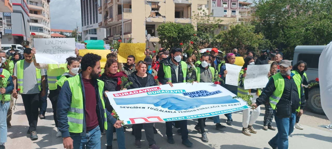 Ağır yıkıma uğrayan Hatay Samandağ’da, enkazdan çıkan molozların yaşam alanlarına dökülmesine karşı çıkan yurttaşlar eylem yaptı.
