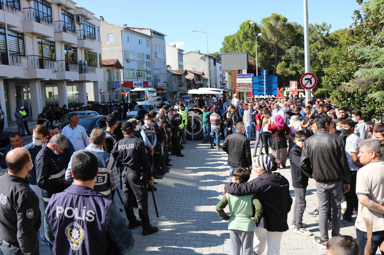 Traktör ve çeşitli araçlarla belediye önünde toplanan yaklaşık bin kişi belediye başkanı ile konuyu Başkan Edis’e aktarmak istedi. Görüşme sağlayamayan vatandaşlar Belediye Başkanı İbrahim Sadık Edis'i istifaya davet etti.