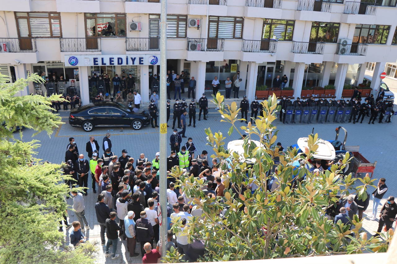 Durumun gerginleşmesi üzerine bölgeye sevk edilen çevik kuvvet polisleri ve jandarmalar yurttaşları yatıştırmaya çalıştı. Olayın kontrolden çıkması üzerine polis yurttaşlara biber gazıyla müdahale etti. Bu sırada bazı eylemciler belediye binasının camlarını kırdı. Olayda Başkan Edis’in kullandığı makam aracı da zarar gördü.
