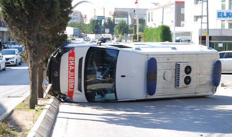 Sancaktepe’de cadde üzerinde giden ambulansla sokaktan çıkan otomobil çarpıştı. İçinde hastanın olmadığı ambulans yan yatarken, sürücüsü kazayı yara almadan atlattı.
