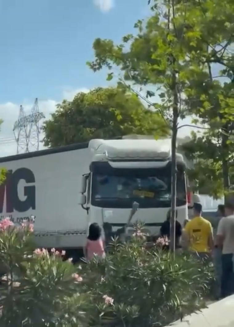Otomobilinin sürtünmeden dolayı hasar aldığını gören sürücü TIR şoförüne saldırmak istedi. Çevredeki vatandaşlar, otomobil sürücüsünü yatıştırmaya çalıştı. Sürücü yerden aldığı taşı TIR’ın camına atarak kırdı.