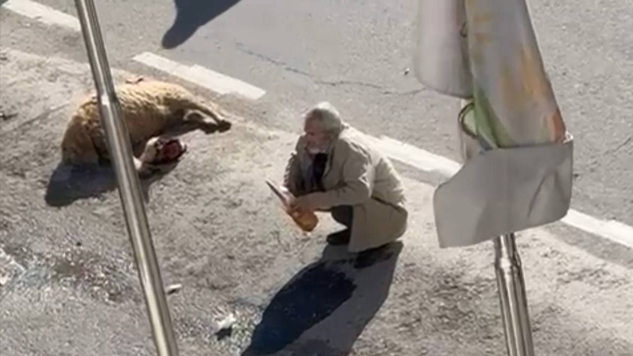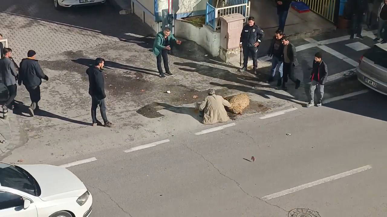 Koyunu yere atan ve elinde bıçak ve benzinle yanına kimseyi yaklaştırmayan Kurt'u görenler durumu polise bildirdi.