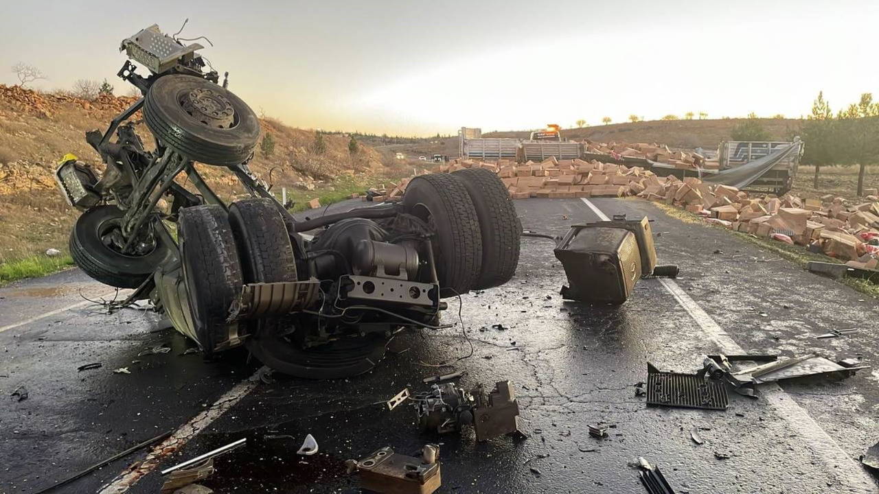 Halil Akay idaresindeki mısır yüklü 63 K 8022 plakalı TIR ile sürücüsü belirlenemeyen gıda malzemesi yüklü 01 Z 2490 plakalı TIR kafa kafaya çarpıştı.