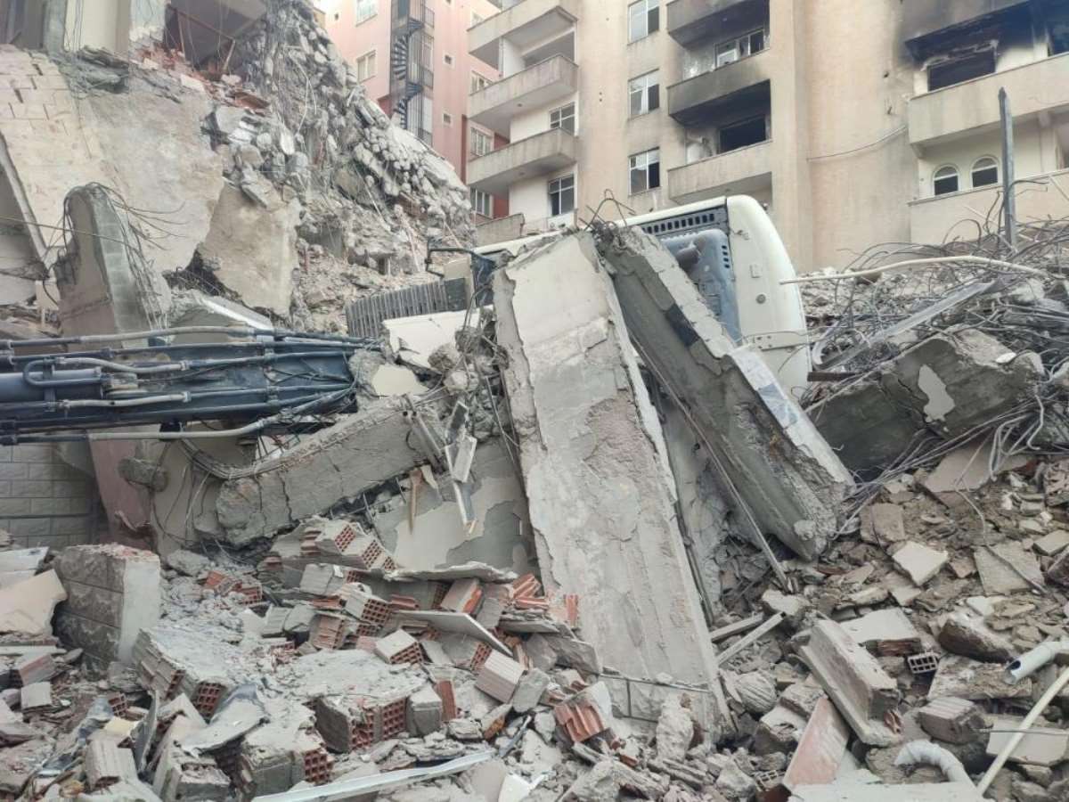 Şanlıurfa'nın Haliliye ilçesine bağlı Bahçelievler Mahallesi’nde depremde hasar gördüğü gerekçesiyle daha önceden boşaltılan bina kepçe ile yıkılmaya başlandı.