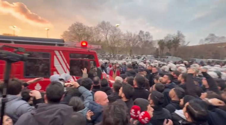 Polis ekipleri yangına giden itfaiye araçlarına uzun süre izin vermedi.