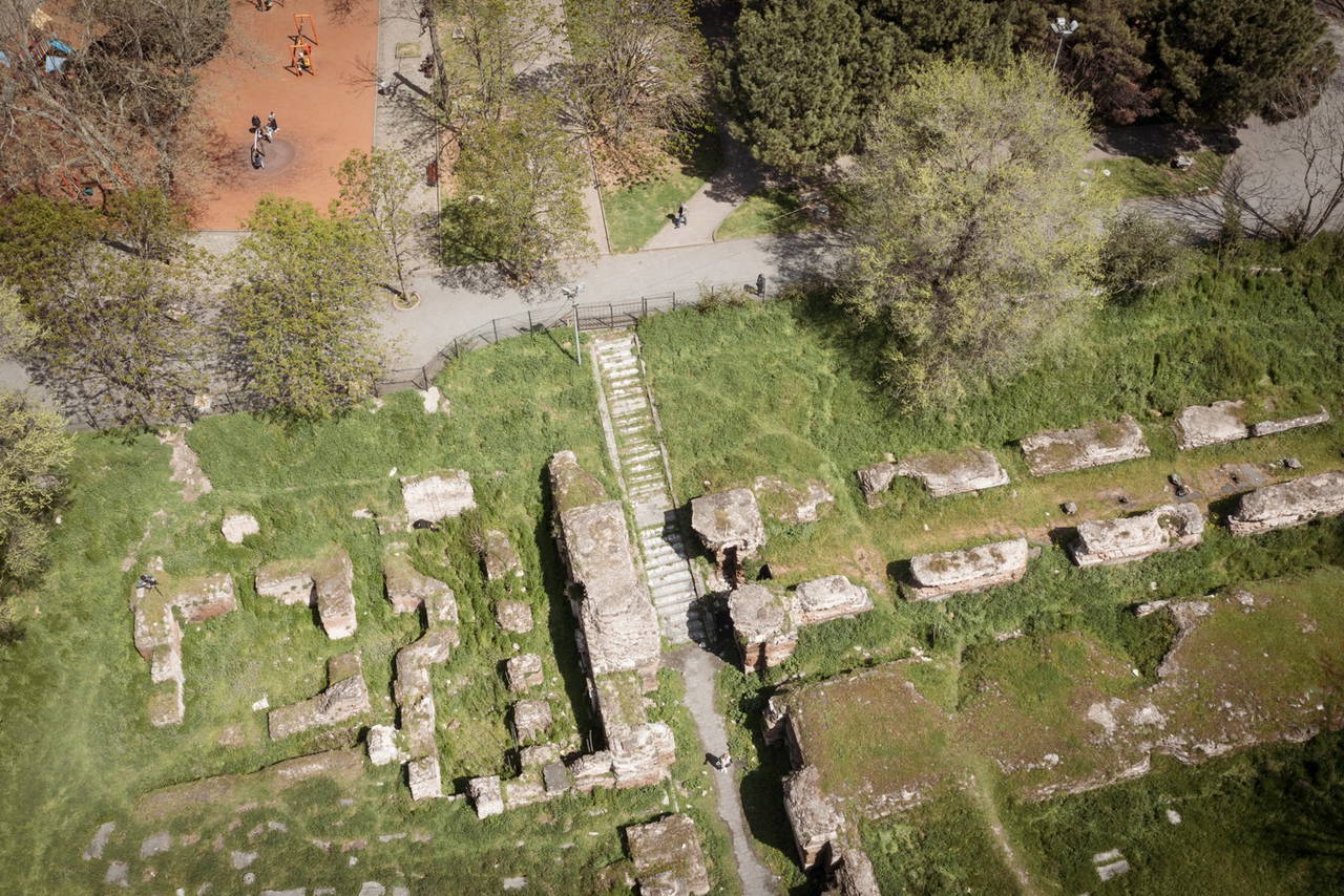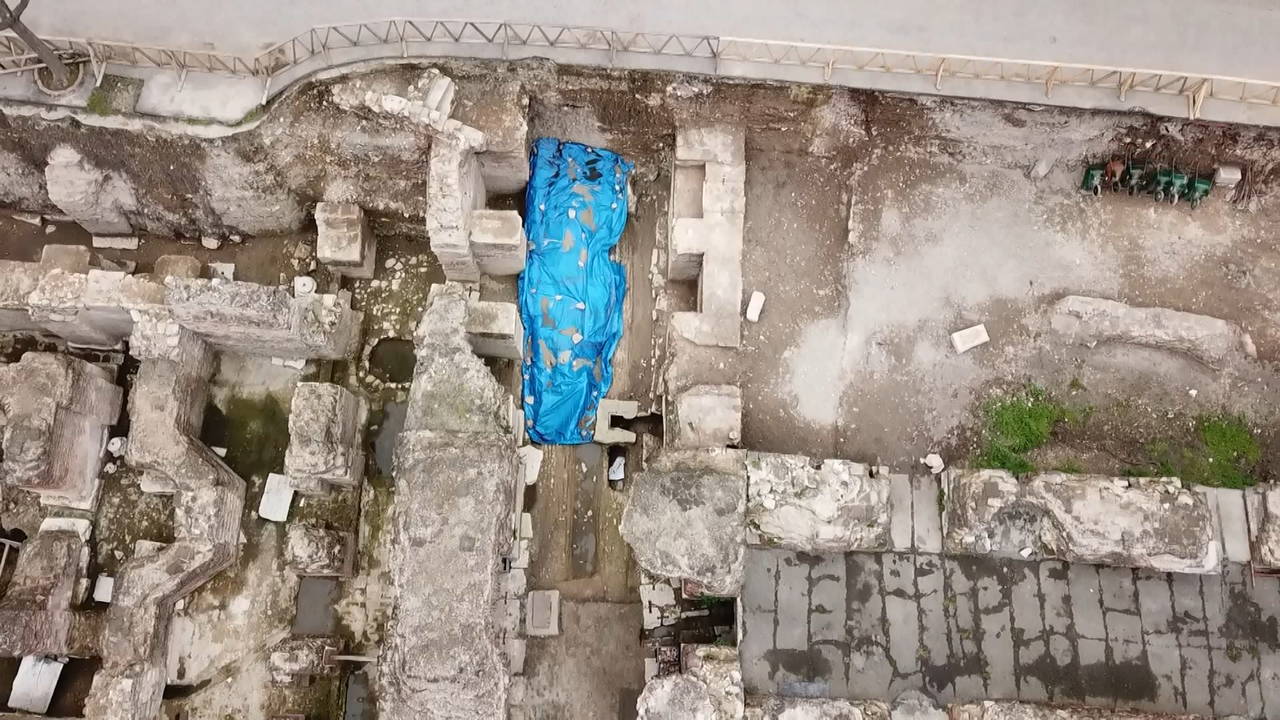 Öte yandan kazı çalışmasının yapıldığı Saraçhane Arkeoloji Parkı havadan görüntülendi.