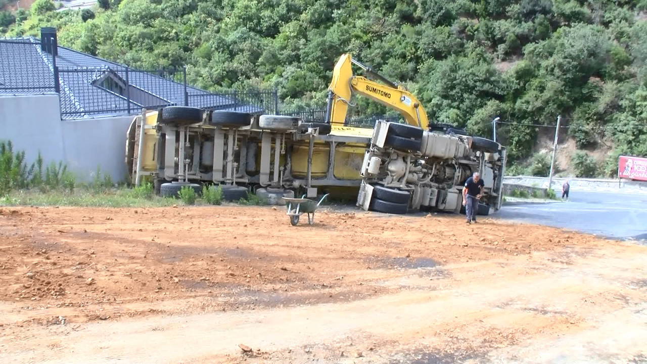 Ancak kamyonu durdurduğu yol rampa olduğu için kamyon yan yatmaya başladı. Durumu fark eden şoför kamyondan atlayarak kurtuldu. Kamyon büyük bir gürültü ile devrilirken, kamyondaki toprak yola saçıldı.