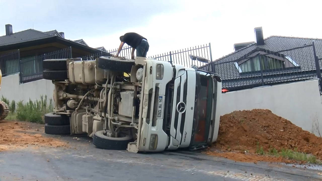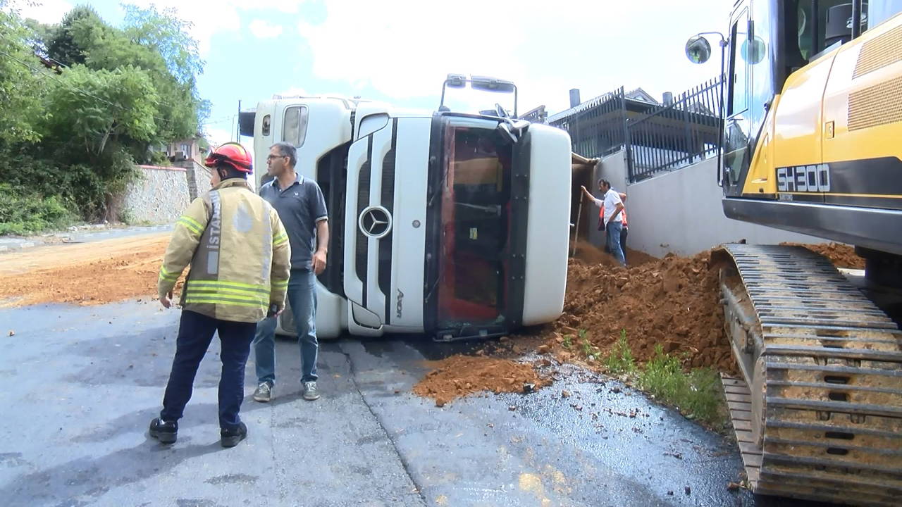 Kamyonun devrildiği sokakta oturan Murat Karaçöl ise, “Bizim evimiz şurada, ilk önce damperin açılış sesini duyduk ama gıcırtı sesi geliyordu. İki dakika geçmeden kamyon devrildi. Herhalde bayırda ters durmuş, ağırlık bir tarafa verince devrildi. Biz de hemen geldik, Allah’tan şoförde bir şey yoktu" şeklinde konuştu.