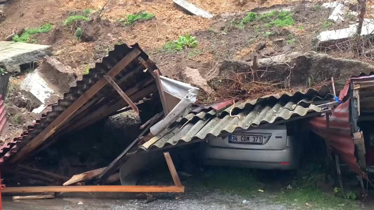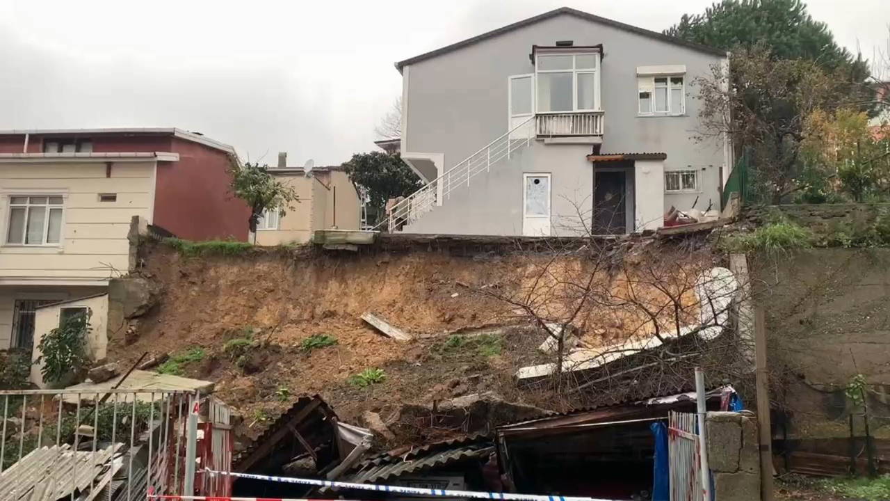 İstanbul Sarıyer'de toprak kayması sonucu istinat duvarı çöktü.