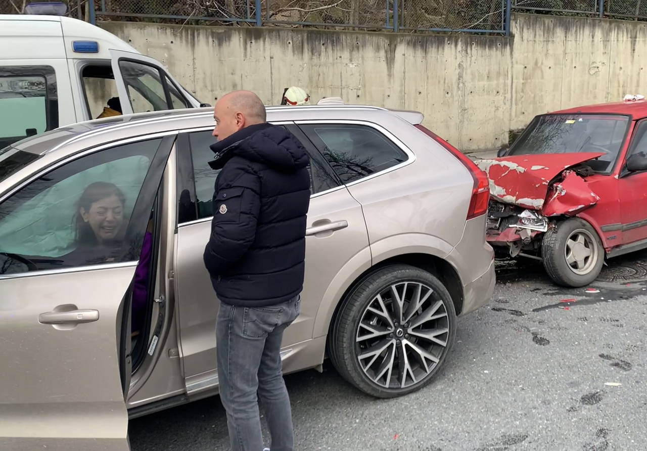 Otomobilin çarptığı aracın sürücüsü olan kadın ise itfaiye ve sağlık ekiplerinin yaralıya müdahalesi sırasında ağladı.