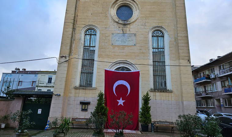 Saldırı sonrası kilisenin giriş kapısına ise dev Türk bayrağı asıldı.