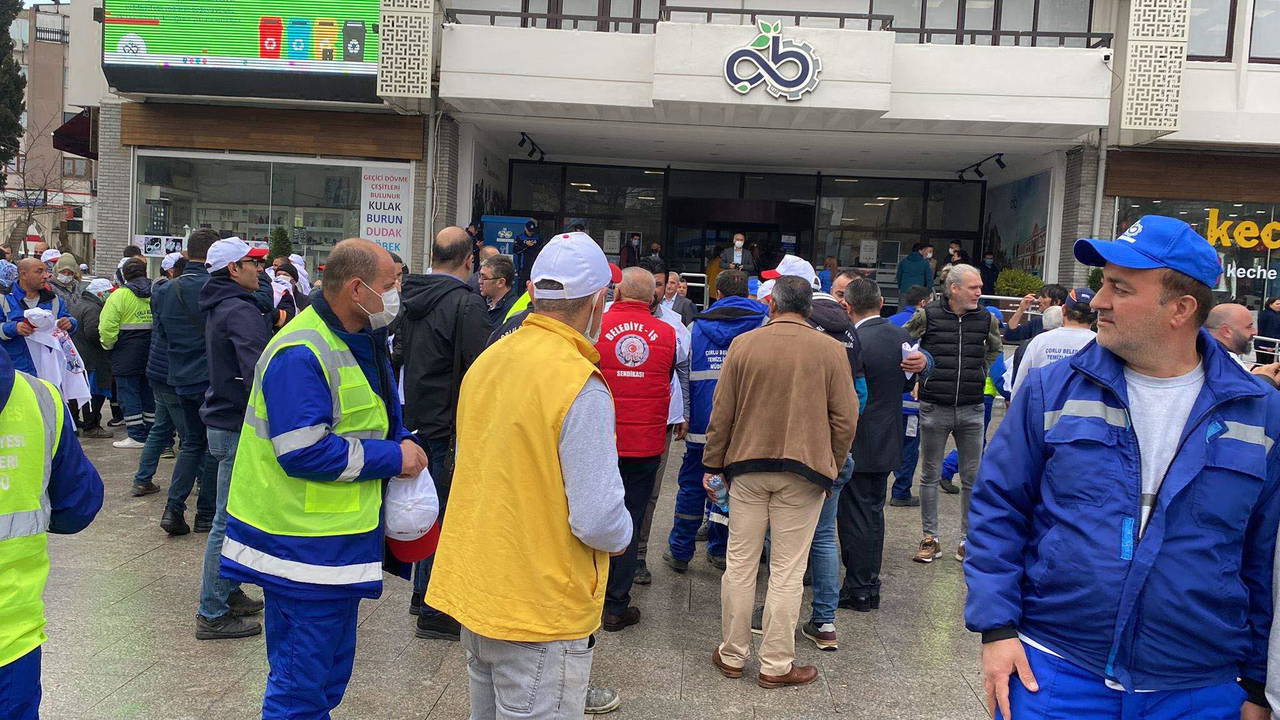 Çorlu Belediyesi ile Belediye-İş Sendikası arasındaki toplu iş sözleşmesi görüşmelerinden sonuç çıkmadı. Bunun üzerine sendika grev kararı aldı. Belediye önünde toplanan işçiler, görüşmelerin anlaşmazlıkla sonuçlanmasını alkışlarla protesto ederek, eylem yaptı.