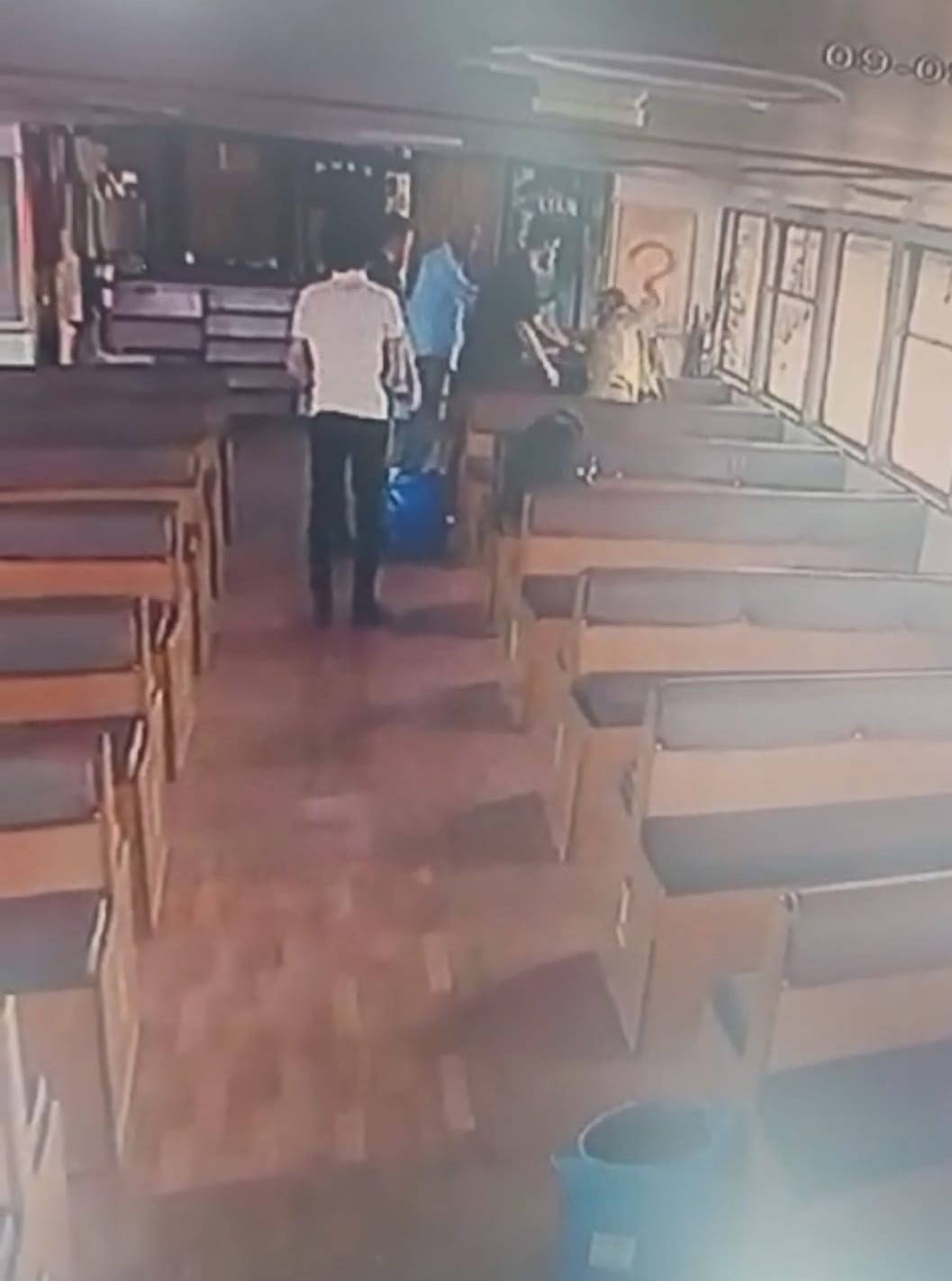 M.E.A'nın arkasında bir koltuğa oturan N.Ç. bir süre sonra da M.E.A'nın saçlarını yakıyor.