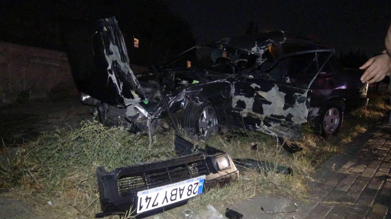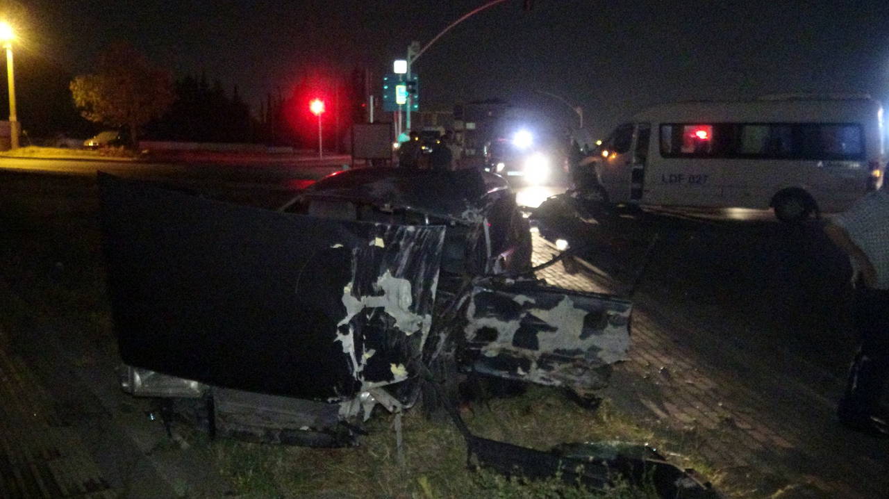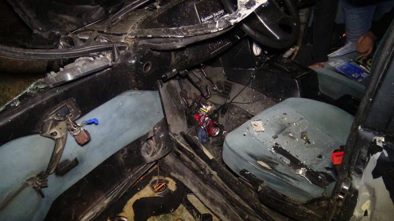Hurdaya dönen ve içerisinde içki şişelerinin bulunduğu otomobilde sıkışan sürücü Cenk Y., itfaiye görevlileri tarafından çıkarıldı.