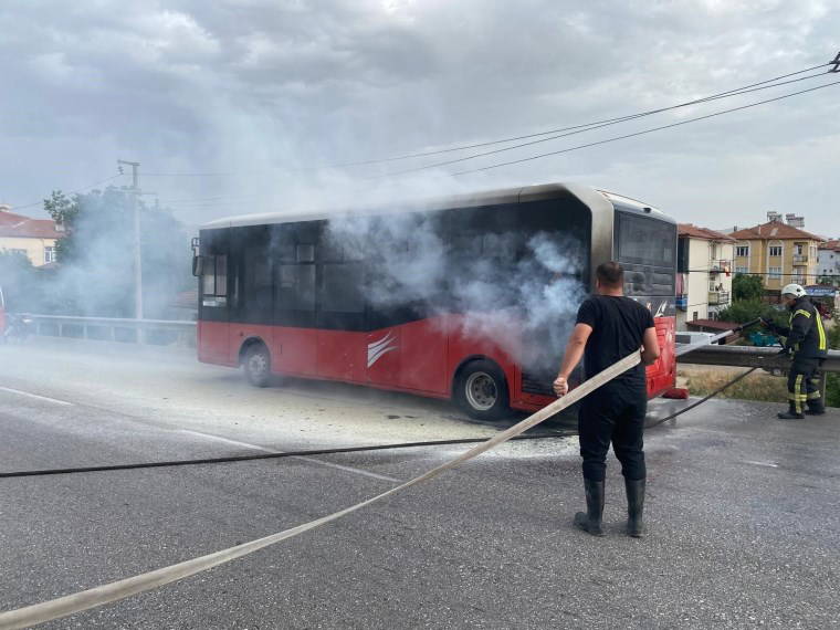 Otobüsün arka kısmından alevler yükseldiğini erken fark eden otobüs sürücüsü, otobüsü emniyet şeridine çekerek yolcuları tahliye etti.