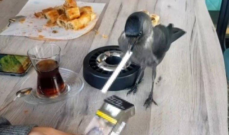 Nilüfer ilçesinde bulunan bir kafeye gelen müşteriler, masalarına konan kargayı görünce büyük şaşkınlık yaşıyor. Karga müşterilerin masalarına gelip yemeklerini yiyor. Ayrıca paketlerden sigaralarını alıyor. Vatandaşlar masalarından yemeklerini yiyen ve sigaralarını çalan kargaya dokunmayıp hoşgörüyle karşılıyor. Karga da masalarda gönlünce gezip karnını doyuruyor. Bir de paketten sigarayı çekip ağzına götürüyor. Sigaranın hayvana zarar vereceğini düşünen müşteriler, ağzına sigarayı alıp yakmasını bekleyen karganın kendilerinden çaldığı sigarayı yakmıyor.