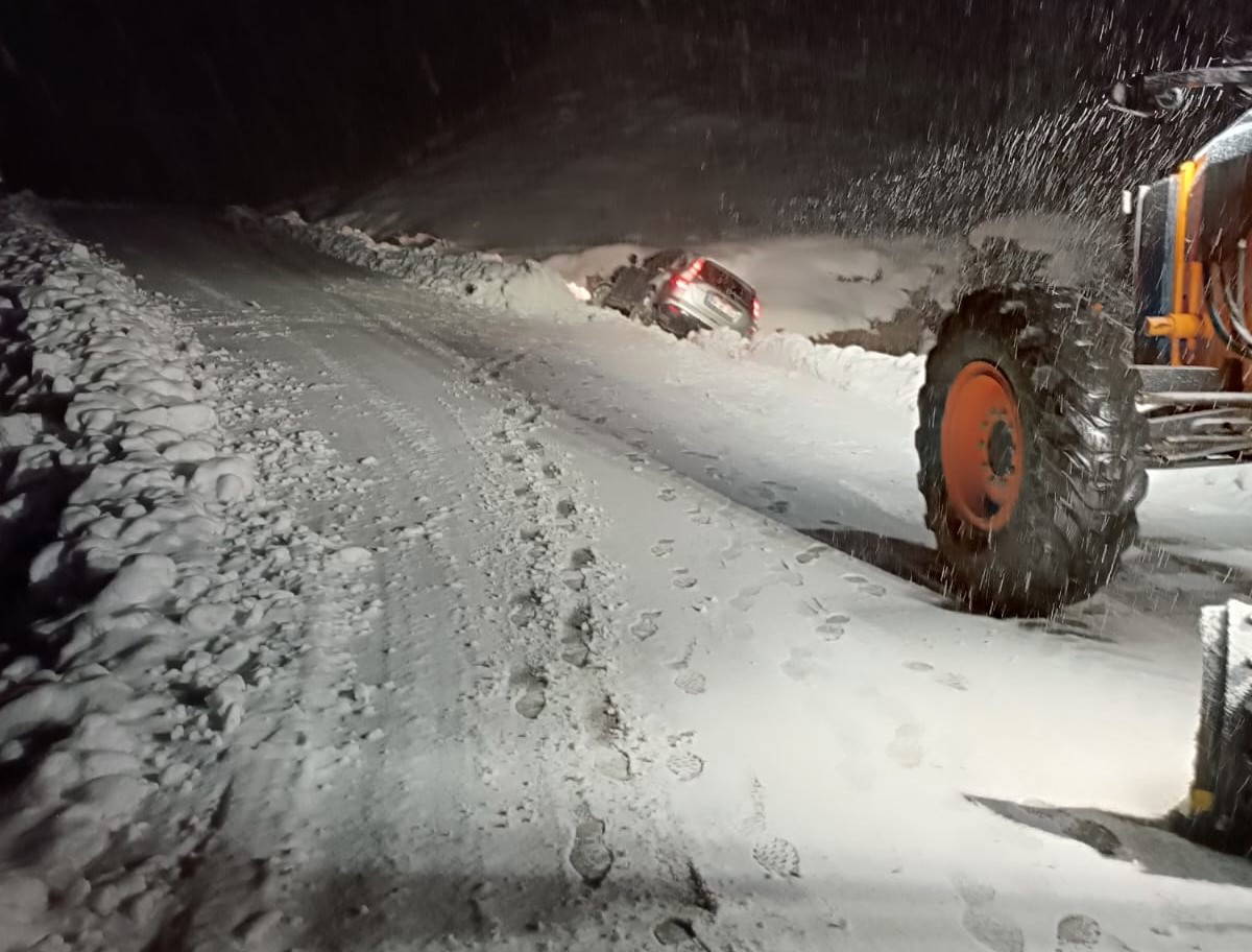 Karla mücadele ekipleri kapanan yolların açılması için çalışmalarını sürdürürken, Eruh ilçesi Meşindağı mevkisinde yoğun yağışla birlikte yoldan çıkan bir cip ve içindeki 3 kişi, Karayolları 94’üncü Şube Şefliği ekiplerinin çalışmasıyla halat yardımıyla çekilerek kurtarıldı.