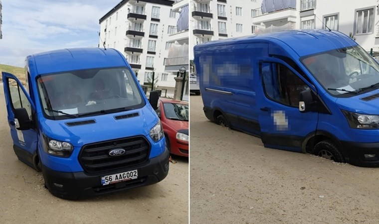 Afetevler Mahallesi’nde öğle saatlerinde bir kargo firmasına ait 56 AAC 002 plakalı minibüs, seyir halindeyken çöken yolda oluşan çukura düştü.