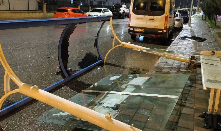Şiddetli rüzgar nedeniyle Veyselkarani Mahallesi 1903. Sokak'ta bulunan otobüs durağı devrildi. Bu sırada durakta bekleyen kimse olmadığı öğrenildi.
