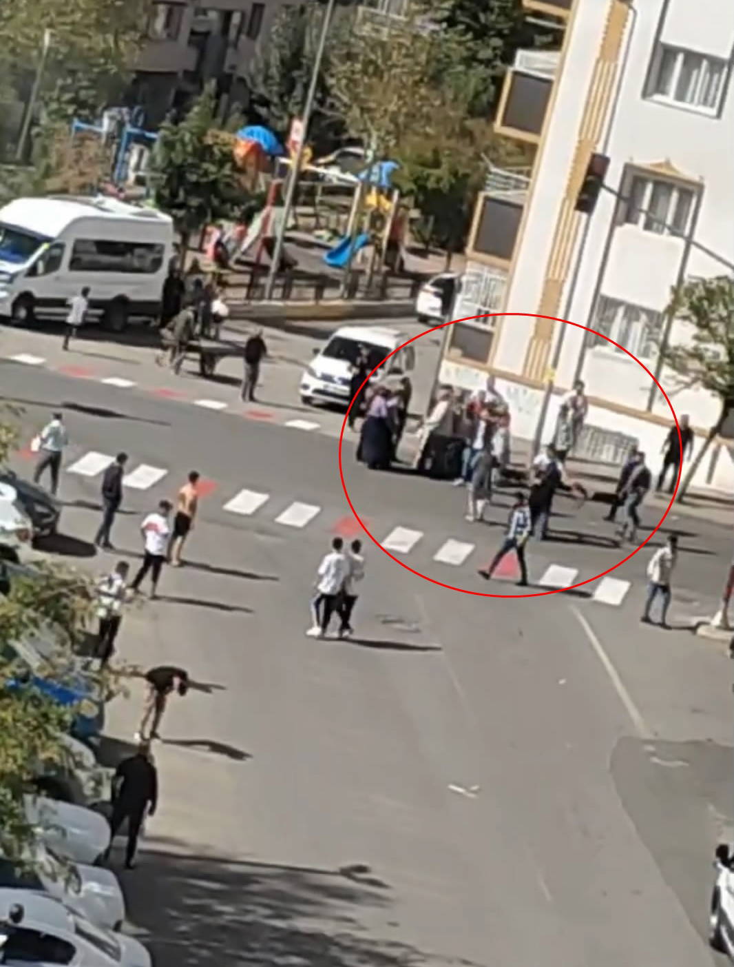 Kavga anları cep telefonu kamerasına yansırken, bazı şüpheliler ifadeleri için emniyete götürüldü.