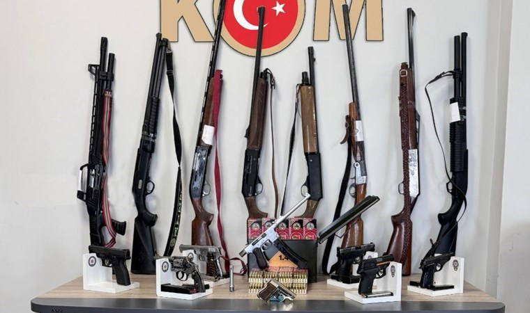 Şüphelilerin üst, araç ve ikametlerinde yapılan aramalarda 23 ruhsatsız tabanca, 3 bin 316 tabanca fişeği, 35 tabanca şarjörü, 10 ruhsatsız av tüfeği, 216 av tüfeği kartuşu, kurusıkı tabanca, 18 şarjör, 3 namlu, 200 gram esrar ve 2 uyuşturucu hap ele geçirildi.