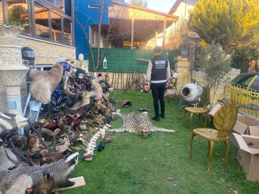 Yine aynı evde 81 adet leopar kürkü ve kafaları, karaca ve tilki tahnitleri, kafatasları, alageyik trofe ve çeşitli hayvan boynuzları ele geçirildi. Operasyonda 1 kişi gözaltına alındı.