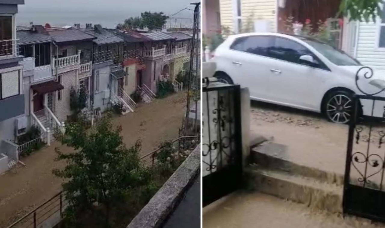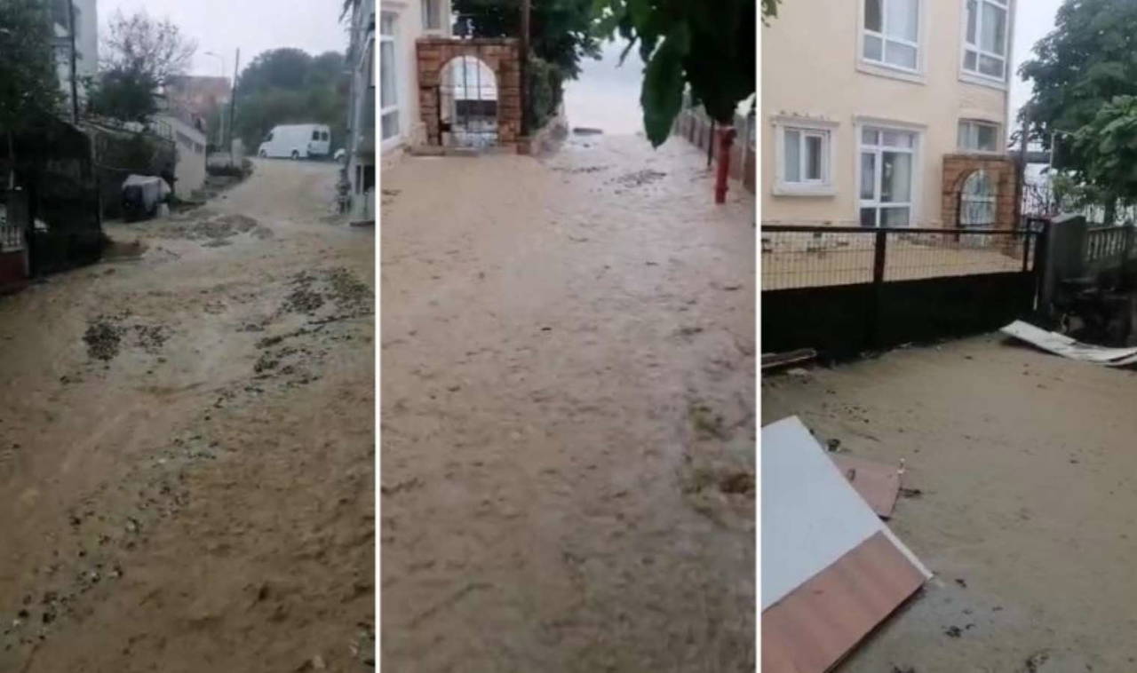 Silivri'de öğleden sonra etkili olan sağanak yağışın ardından yollar adeta nehre döndü. Özellikle Gümüşyaka Mahallesi'nde bulunan bazı sitelerin yolları ve bahçeleri sular altında kaldı. O anlar cep telefonları ile saniye saniye kaydedildi.