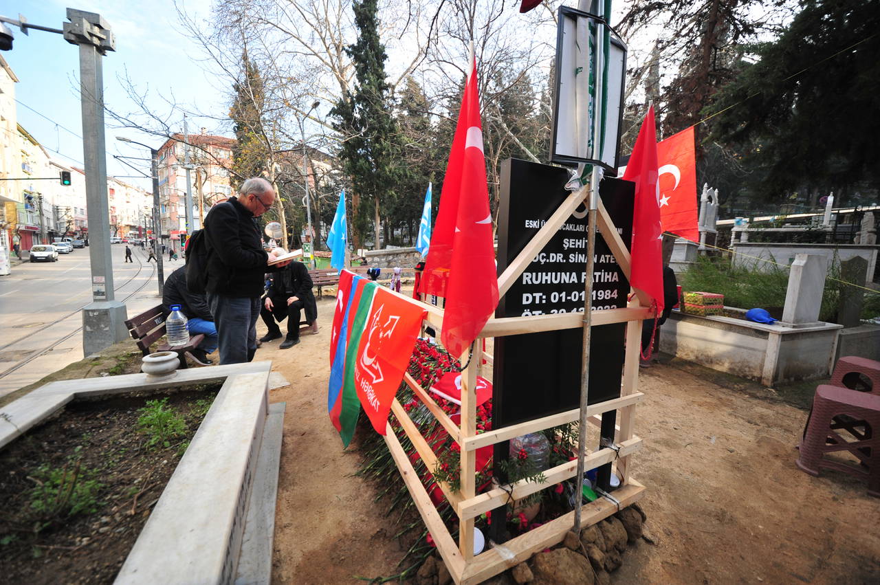 Sinan Ateş’in, defnedildiği günden bu yana, yakınları ve arkadaşları Türk bayrakları ve Azerbaycan bayraklarının da asıldığı mezarı başında 7/24 'saygı' nöbeti tutuyor.