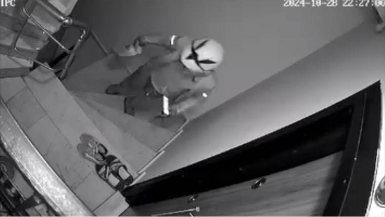 O sırada bir dairenin önündeki ayakkabıları inceleyen kurye, bir üst kata daha çıkıp geri döndükten sonra bir çift ayakkabı çaldı.
