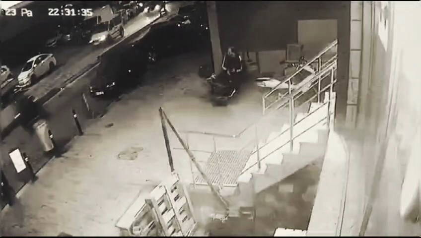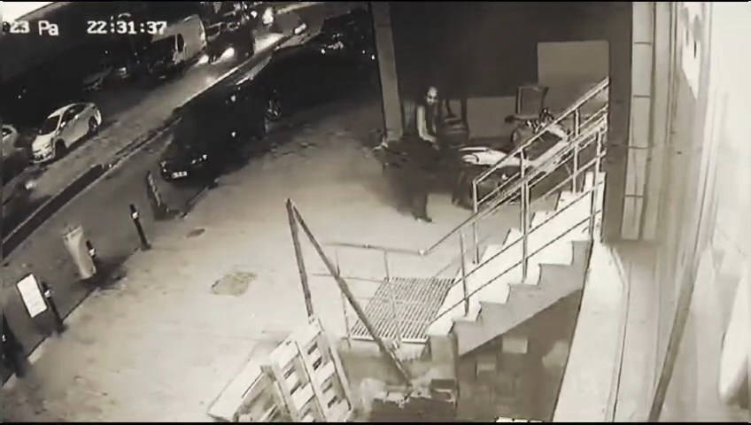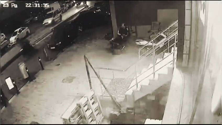Görüntülerde, saldırı gerçekleştiği sırada iş yerinin önünde oturan bir kişinin mermilerin hedefi olmaktan kıl payı ile kurtulduğu da görülüyor. Saldırganlar, olayın ardından hiç durmayarak motosiklet ile olay yerinden uzaklaşıyor.