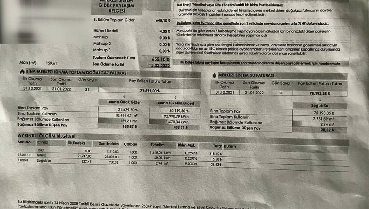 Başakşehir'de bir sitede oturan, kamu kurumunda çalıştığı için isminin açık verilmesini istemeyen İ.Y., geçen ay ısıtma sistemini hiç çalıştırmadığını söyledi. Isıtma ücreti olarak 15 liralık fatura ödeyen İ.Y., sistemi hiç çalıştırmadığı için site yönetimi tarafından ayrıca 418 lira ek ücret yansıtıldığını dile getirdi.