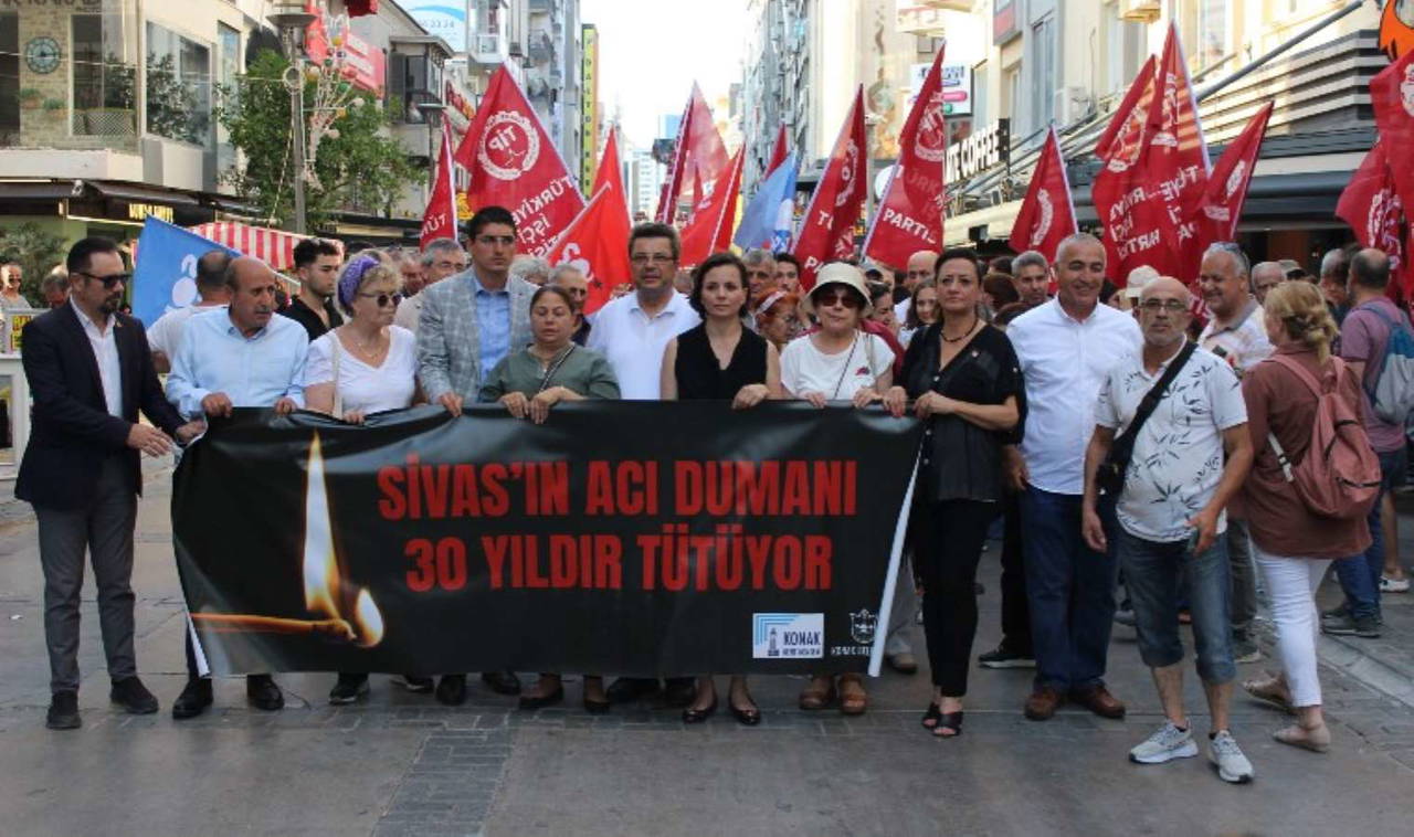 Sivas’taki Madımak Oteli 30 yıl önce ateşe verilmesi sonucu büyük bölümü sanatçı ve aydın 33 kişi yaşamını yitirmesi Türkiye'nin birçok yerinde olduğu gibi İzmir’de de anıldı.