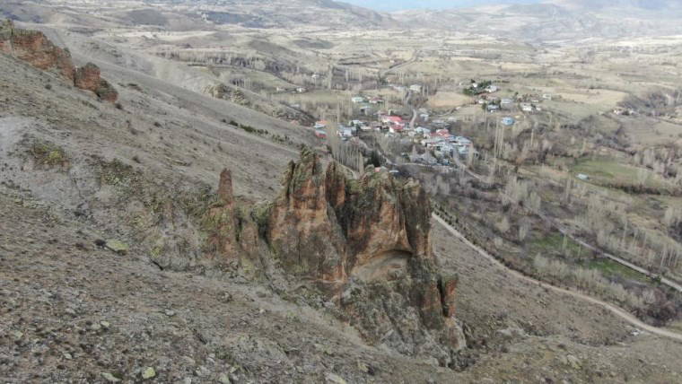 Sivas’ın Divriği ilçe merkezine 17 kilometre uzaklıkta bulunan Olukman köyü, yamacında yer alan dev mantar kayaların tehdidi altında. Köyün eteğinde kurulduğu dağın yüzeyinde bulunan dev mantar kayalar köy sakinleri için tehlike arz ediyor.