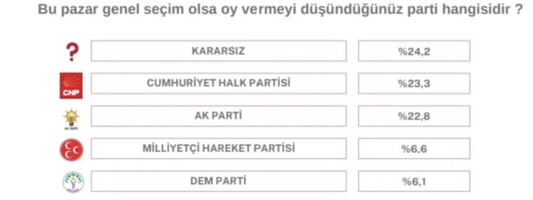 CHP birinci parti olmaya devam ediyor. Araştırmaya göre, en kalabalık seçmen grubu 'kararsızlar.'