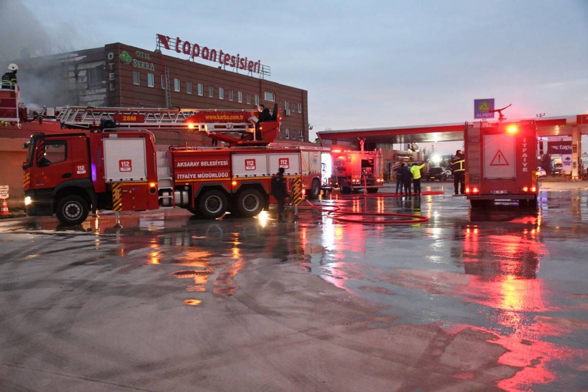 Yangın, saat 17.00 sıralarında Aksaray E-90 karayolu Karasu Kavşağı'nda bulunan bir petrol istasyonunun restoran kısmında çıktı. Edinilen bilgiye göre, yangın kısa sürede büyüyerek tüm restoranı sardı. Alev alev yanan restorandan sıçrayan kıvılcımlar otele de sıçradı. Petrol istasyonu yetkilileri durumu hemen 112 Acil Çağrı Merkezi'ne bildirdi. İhbar üzerine olay yerine çok sayıda itfaiye ekibi sevk edildi.