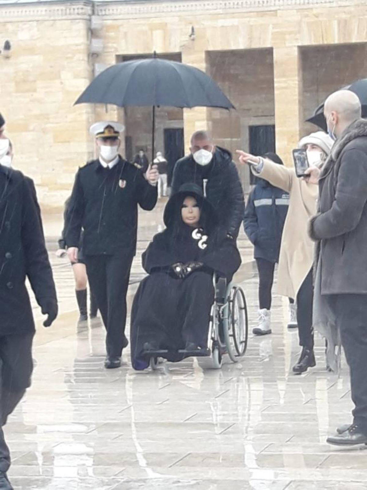 Ünlü sanatçı Bülent Ersoy'un Anıtkabir'i ziyaret ettiği görüntüler sosyal medyaya damga vurdu. Bülent Ersoy'un yağmur altında tekerlekli sandalyeyle gittiği Anıtkabir'de, bir askerin şemsiyeyle kendisine eşlik etmesi tepki topladı.