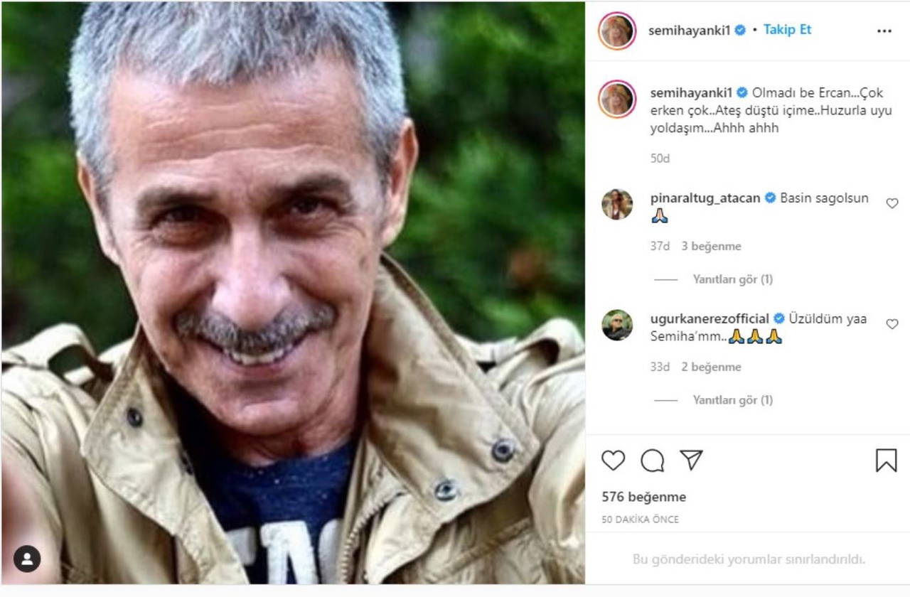 Turgut'un ölüm haberini duyuran şarkıcı Semiha Yankı, ''Olmadı be Ercan... Çok erken çok... Ateş düştü içime... Huzurla uyu yoldaşım... Ahhh ahhh..." ifadeleriyle üzüntüsünü dile getirdi.
