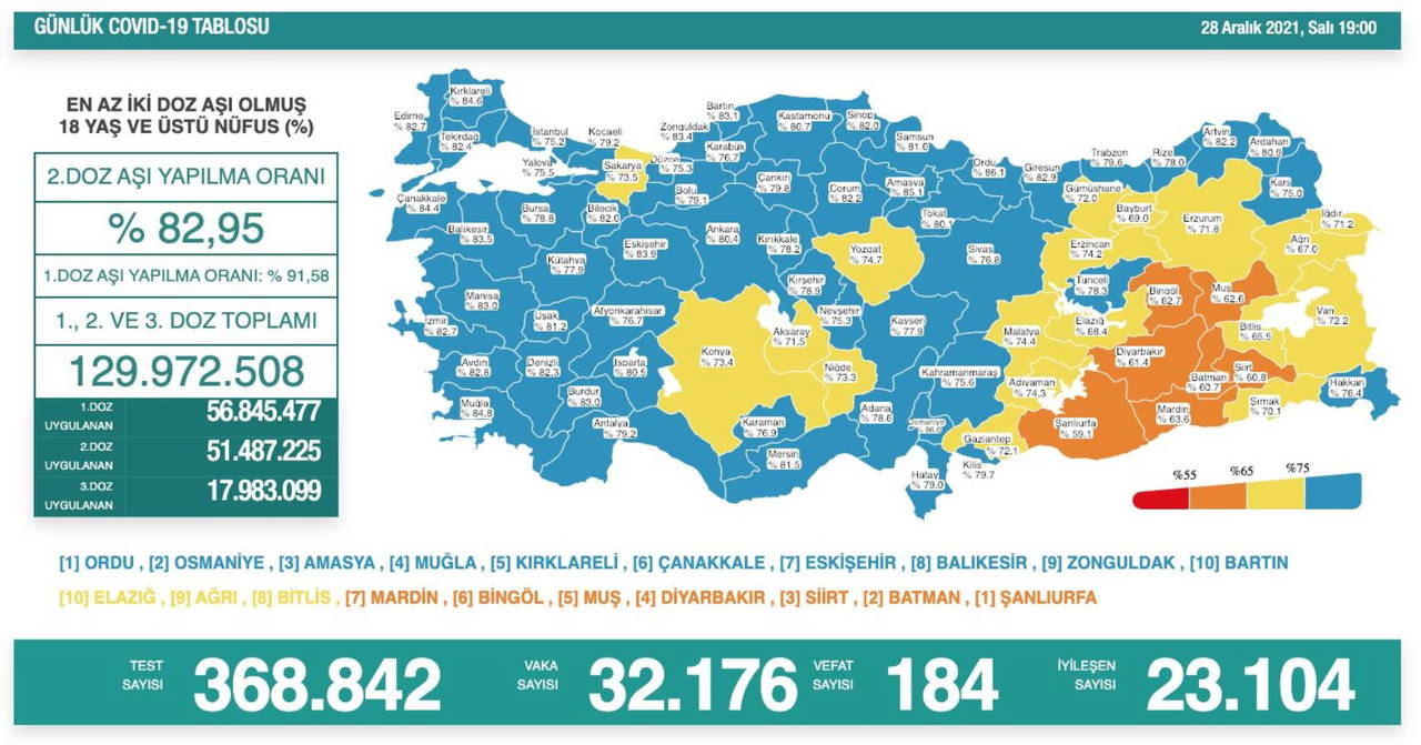 Güncel verilere göre, 32 bin 176 yeni vaka tespit edilirken 184 kişi hayatını kaybetti. Öte yandan, son bir günde 23 bin 104 kişi sağlığına kavuştu.