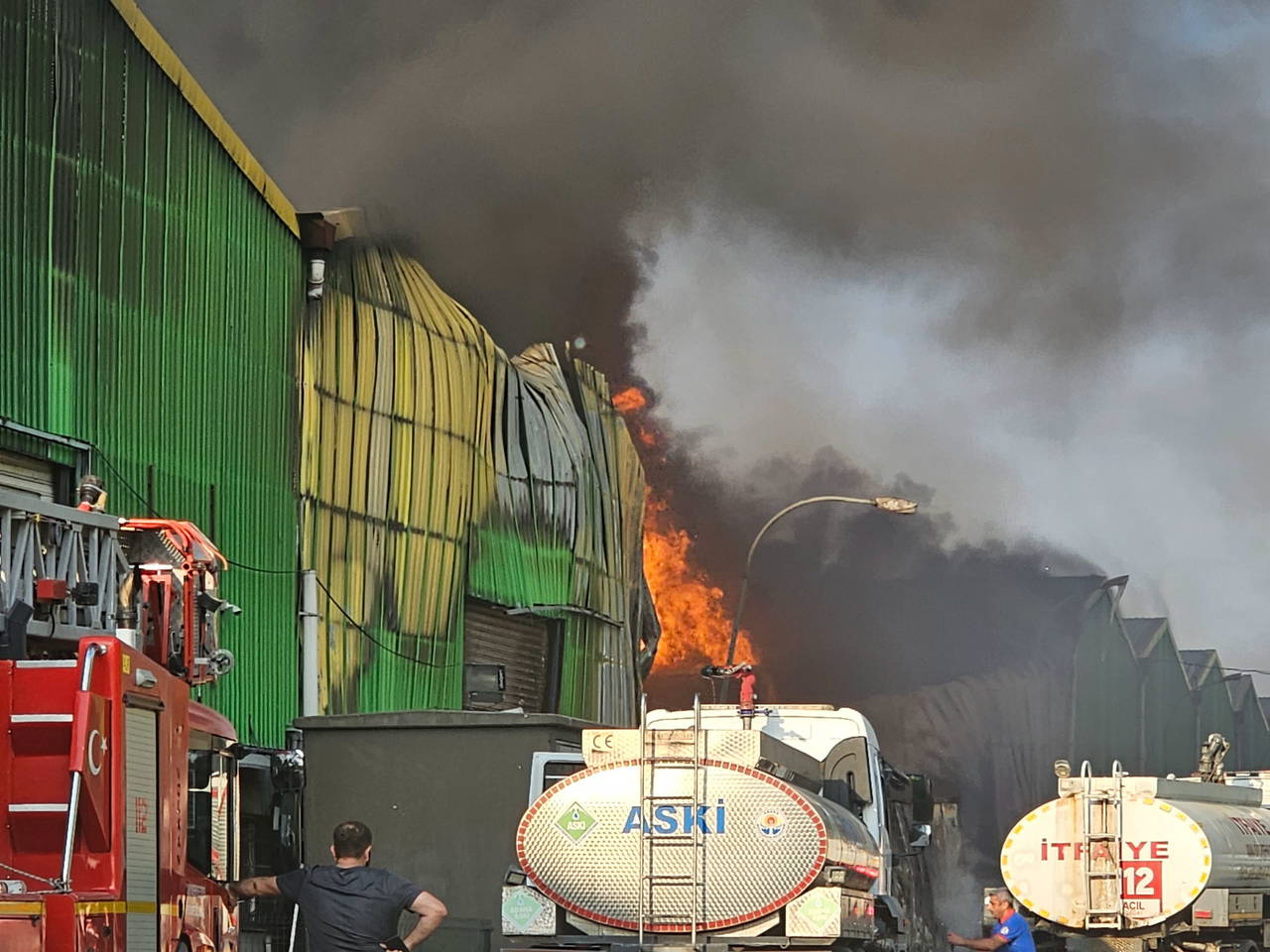 Tesisi kısa sürede saran alevler, karşısındaki kolonya fabrikasına da sıçradı. Firma yetkililerinin ihbarı üzerine yangına itfaiye ve sağlık ekipleri sevk edildi.