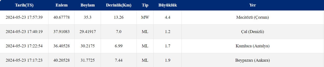 Afet ve Acil Durum Yönetimi Başkanlığı (AFAD), Çorum Mecitözü'nde 4.4 büyüklüğünde bir deprem meydana geldiğini duyurdu.